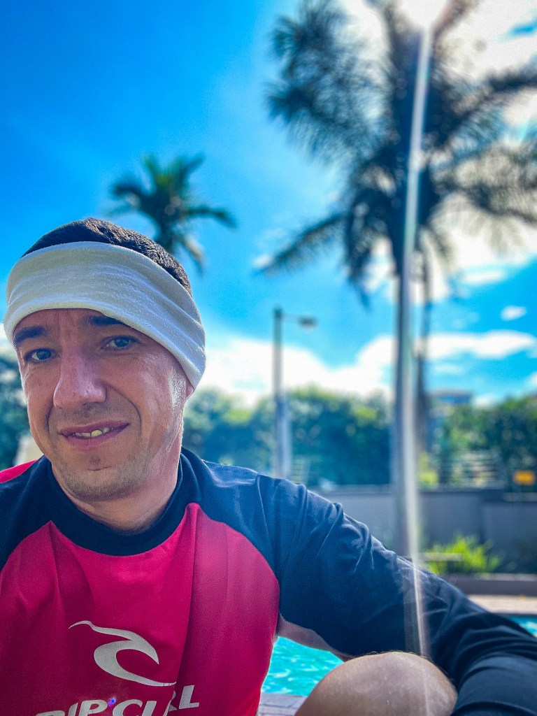 On Tuesday Lutz woke up with a bad earache, which apparently hurt soooo much, we decided to get him a doctor. After the diagnoses she (the doctor) directly asked whether we’ve been to any outdoor pools: Yes we’ve definetly been to some. So we gave us medicine and Lutz unfornutaly had to take a break from surfing and swimming. Plus he had to wear a nice headband the next days.