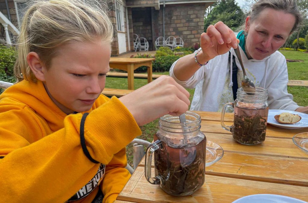 At the purple tea farm we were welcomed with a homemade tea of choice, cake and cookies. Robert – our host – explained everything there is to know about tea and stuff, which was quite interesting actually (e.g. the government controls the process of planting, the plugged tea must get to the factory in less than 3 hours – that’s why you’ll find the best streets in Kenia near the tea farms…).