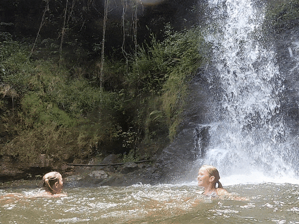 Robert assured, that he had killed all crocodiles and hippos (but if there’d still be one of them, we’ kill it together and eat as dessert) so we could take a bath- which we did, which was a little cold but which was as enjoyable as we could’ve never imagined (you know a waterfall in the jungle – everything around you is bright green, smells good, the air is far from being polluted…. – it was amazing). But still at some point it was scary. The kids screamed because of a big animal beside the water. Fearless Lutz saved them from the crab – a very big crab as the Kids assured. So we unfortunately or fortunately had to leave (it was lunchtime after this – Kenyan cuisine – delicious) and with a tea ceremony afterwards.