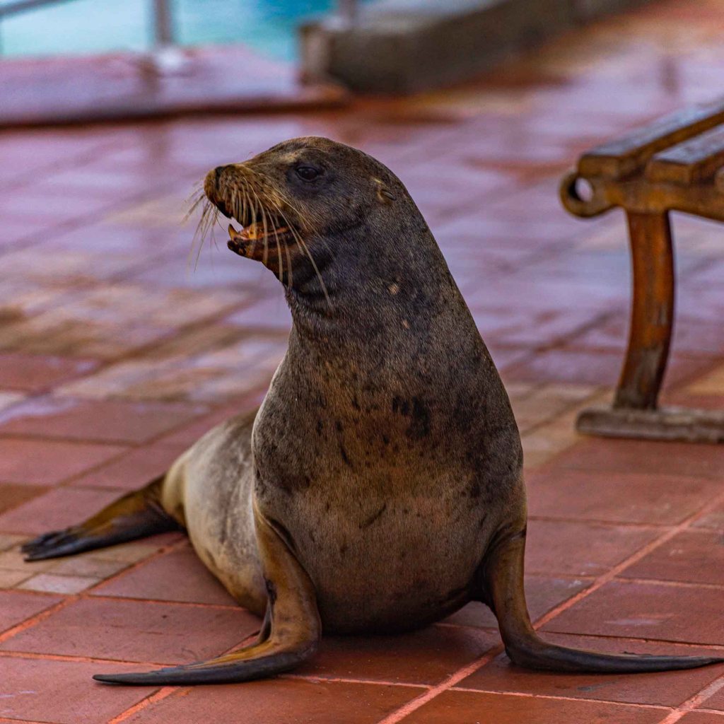 Getting there was quite expensive (flight, entrance fee, bus to the ferry, ferry, taxi to the hostel) and also took us quite some time…. But by the time we arrived – it sure was worth it. We stayed at a sweet little hostel – „Galapagos Dreams“ – located right in the middle of the small town (Puerto Ayora) on the first island we visited – Santa Cruz. The first evening we, while exploring the town, also spotted a lot of animals at the harbour and the only restaurant with proper vegan food – Shawarma – it haunted us (we literally ate there every day).