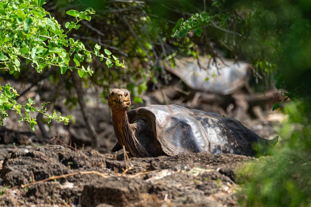 Actually because of not having natural enemies the turtles, like many other species there, have never evolved a defense mechanism so they just ignore people near them or even try to play.