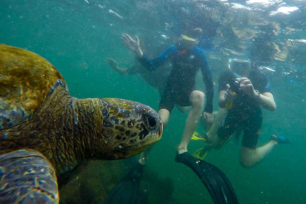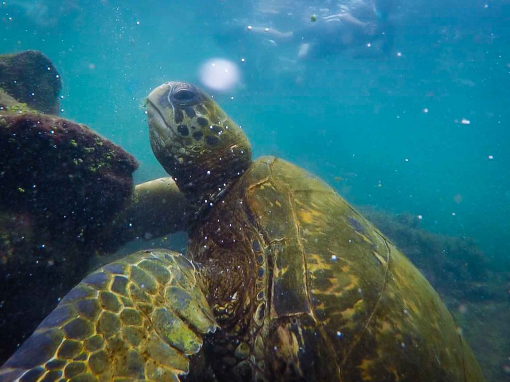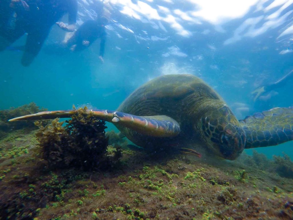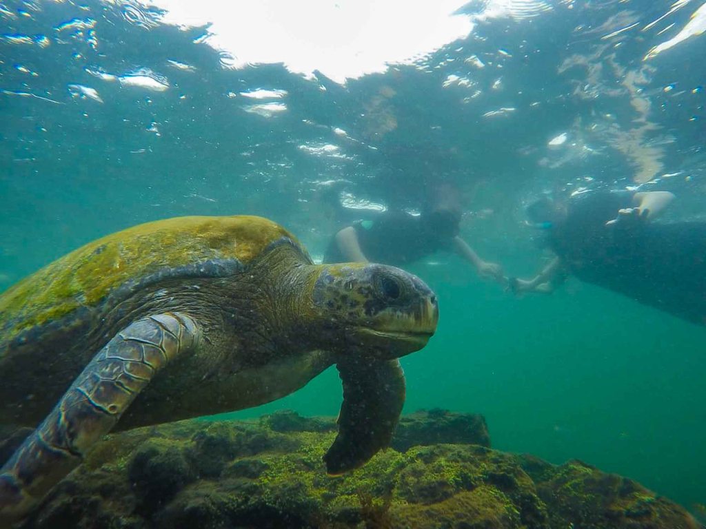 Snorkeling being one of the reasons people visit the Galapagos Islands. We definitely had to do it as well (not only once we did it quite a lot times actually). So our first snorkeling trip was great but we „only“ saw medium sized turtles, a lot of fish and an eel. However the trip included a hike through the scenic landscape a lot animals to watch and finally snorkeling in a canyon (with unfornutaley even less fish) with the greatest view.