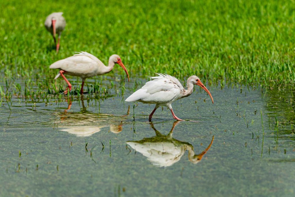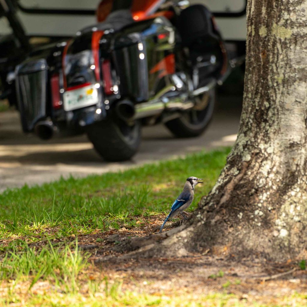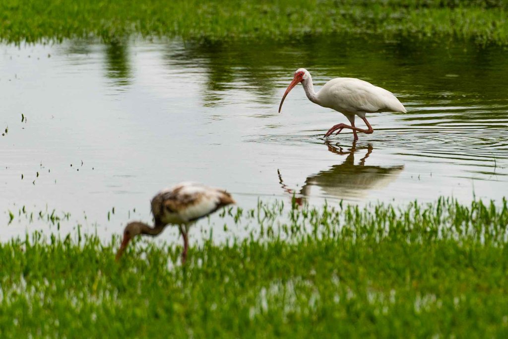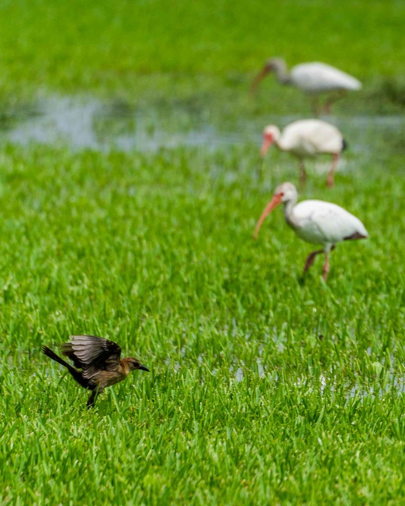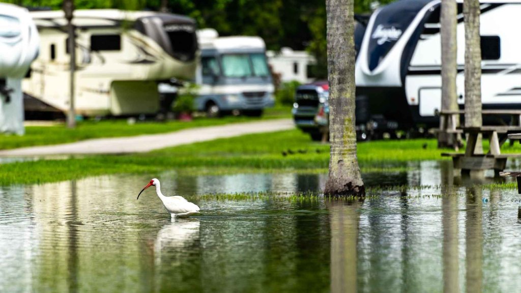One room for five people. Will that work? We would have to give it back 1200 miles (2000 km) north in the near of New York. After 20 minutes of introduction we were prepared to drive and live in the RV and were directly heading to find our first stop. Unfortunately there were still floods in Florida wich affected the RV Parks as well. We later found out that some camp grounds closed the stormy weekend before and told the campers to leave. But luckily we found a spot and there were no thunderstorms in the beginning of our RV trip. Some birds really liked their new flooded playgrounds.