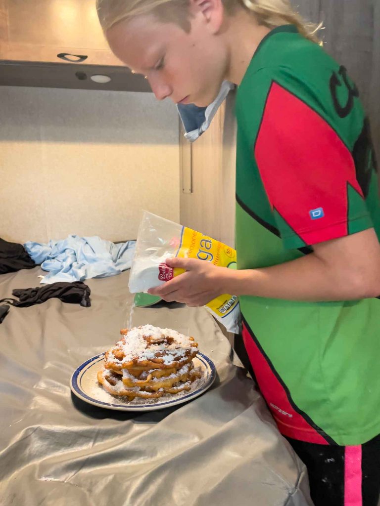 We normally didn’t book RV Parks in advance to be fully flexible on our road trip to stop whenever we want. We were always lucky to get a free spot, except the last day where we were rejected at a full campsite. So in the middle of nowhere in New Jersey with no campground around the next 50 miles what to do? They said ‘home is where you park it’, right?