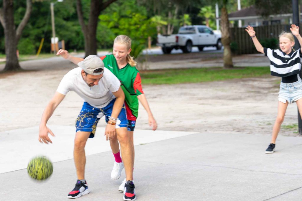 We maintained our volleyball skills whereever possible. And after watching the NBA Finals we got into some basketball addiction. But we also tried out every other sport available on the campgrounds.
