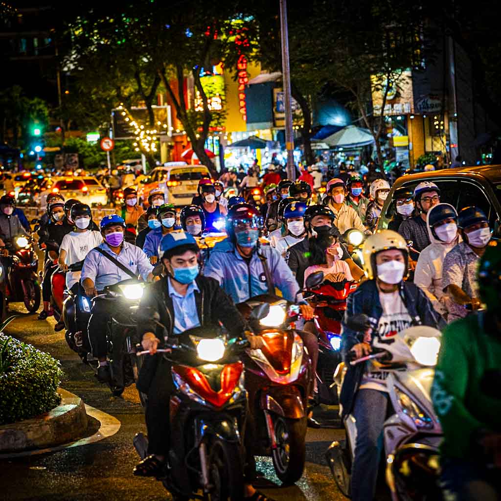 The first thing you‘ll notice while visiting Ho Chi Minh City/ Vietnam is surely going to be the large amount of motorbikes, driving crazy, like they‘re cats (yk cats have lives). Crossing the streets – always a thrill… just don’t stop. And it seems like the Vietnamese can literally transport everything on their motorbikes (dogs, furnitures, whole family’s, even motorbikes…).