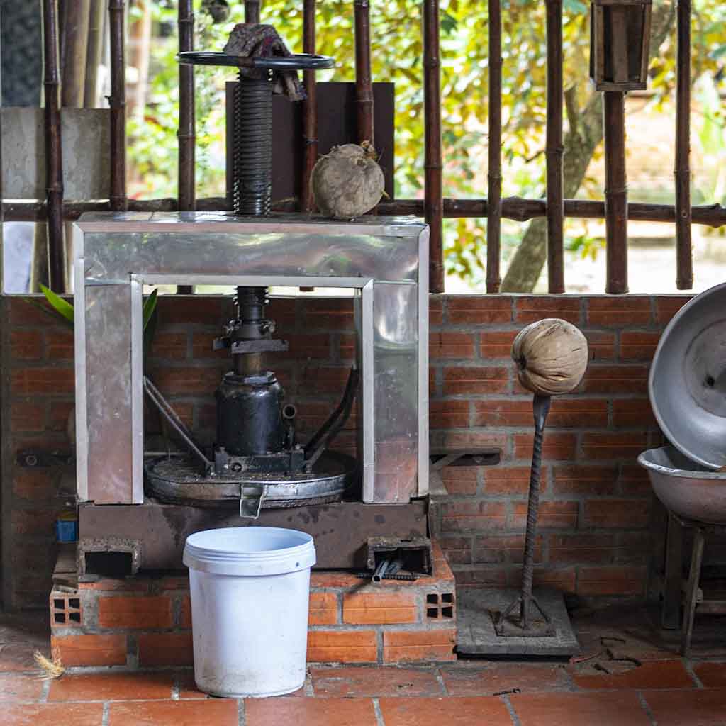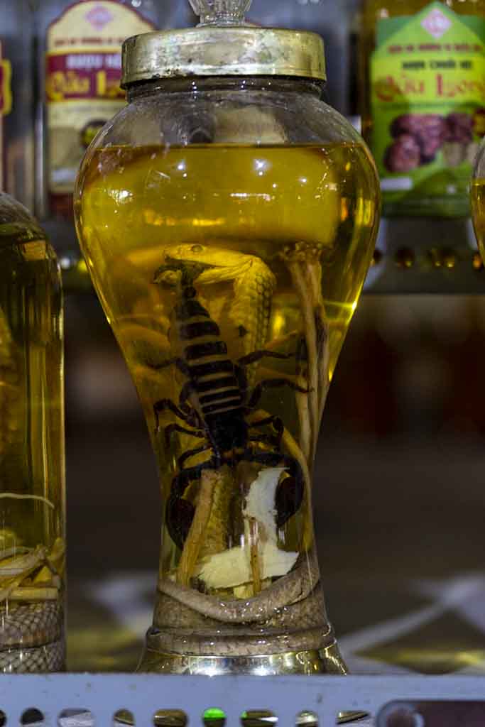 We then went south to the Mekong Delta. We booked something recommended by the other two tour guides. The new tour guide (a friend/colleague of them) took us to a wonderful homestay in Vinh Long. He did bicycling with us as well as driving riding a boat through the river and visiting fabrics for noodles and stones/pottery. Lutz had a not vegetarian drink you can see in the pictures. To Can Tho, the next stop, we took the public bus, which is an adventure and an experience in itself.
