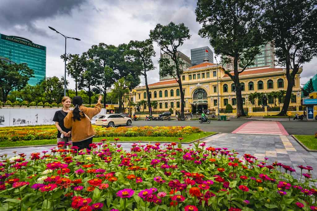 First thing we did was a motorbike tour sitting in the backseat (of course) of our two guides to get to know Ho Chi Minh City. Lots of the sights they showed us were from the French colonialization period, e.g. the Postoffice or the Cathedral… But it was the markets with all the street food we fell in love with.