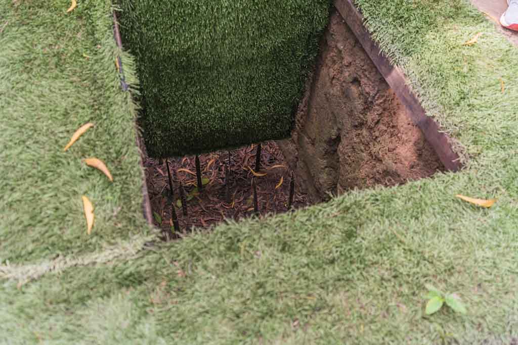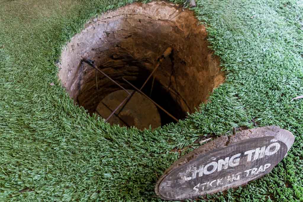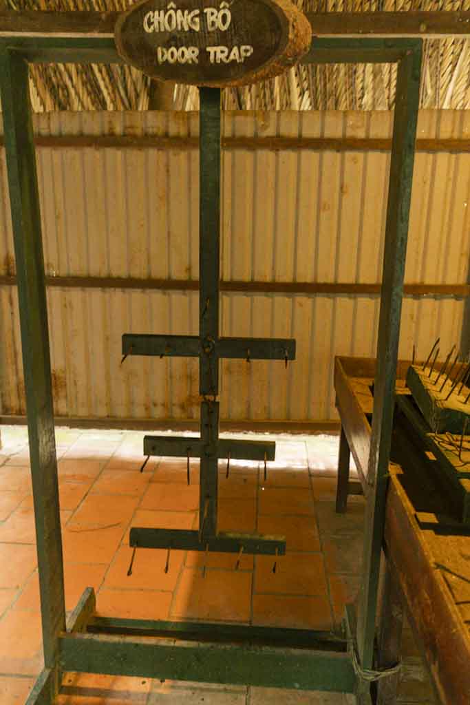 We crawled through (only) 100m of the 250km of the tunnels in the Cu Chi Area that were made bigger for tourists – but still very small… The Vietnamese allow this kind of experience to keep the memory of this horrible time. We‘ve also got lots of info about the construction of the tunnel systems and the guerilla tactics/ traps used.