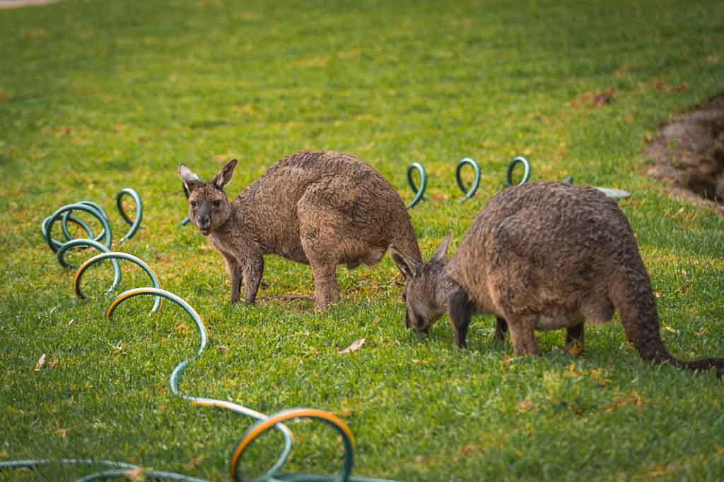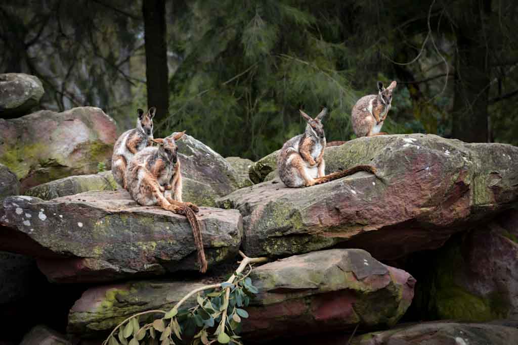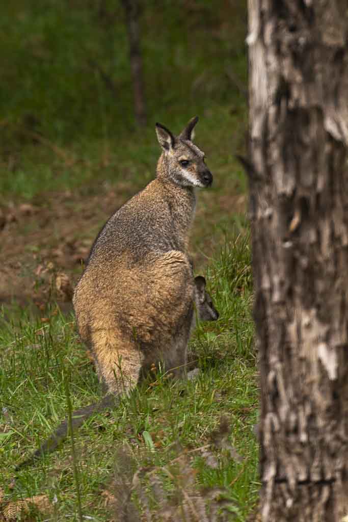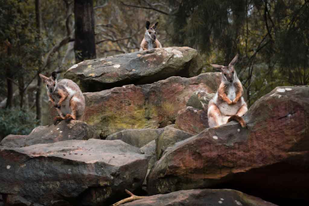 Being in Australia we definitely wanted to see kangoroos. So we rented a car and checked the internet for good points to spot them. Our kangoroo trip led us to a forest in the blue mountains in the north of Sydney. The landscape was wonderful but after getting into the forest we didn‘t meet anymore other cars. We later had to find out that the road we were using was a dead end. Unfortunately also our mobile phones lost the connection and didn‘t work anymore. So navigation wasn‘t possible. But then we saw the first kangoroo. It was dead on the side of the street probably hit by a car. It was followed by two more dead kangoroos which made us think what we would do if we get hit by a kangoroo here in the forest without any connection to the outer world. We drove on slowly and were rewarded with views of lots of kangoroos that were living in the forest.